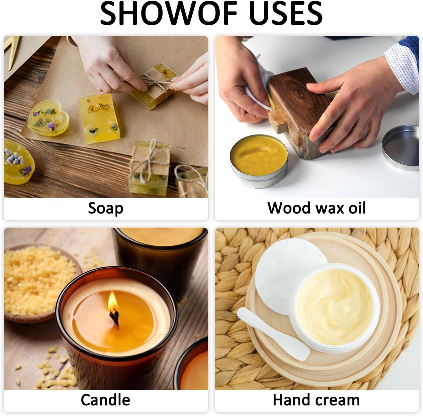 - Natural Beeswax: Made from natural beeswax, it is uniformly granular and easy to handle, perfect for handmade candles.