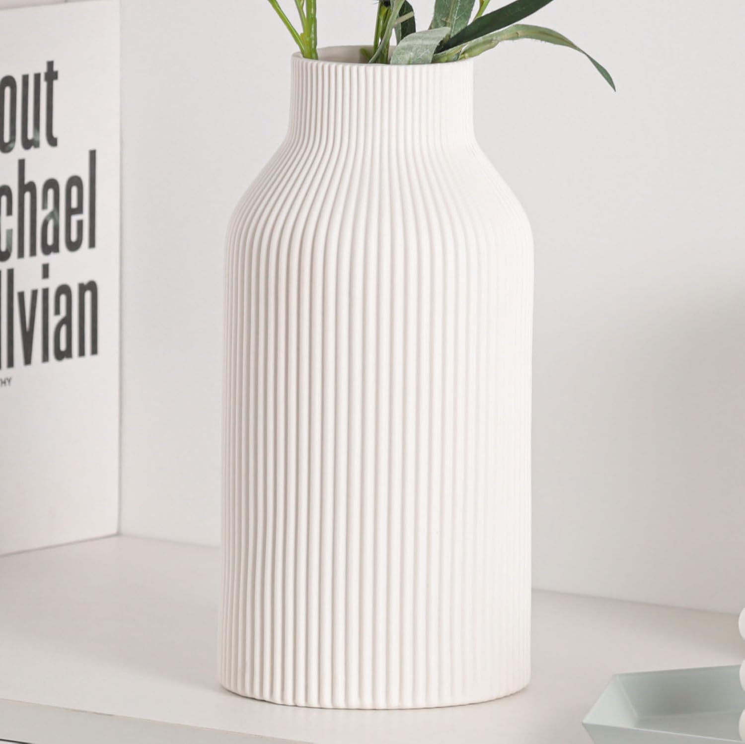 - Modern Minimalist Design with Timeless Appeal:Featuring a matte white finish and subtle ribbed texture, these ceramic flower vases blend modern simplicity with understated elegance. Perfect for modern, rustic, or farmhouse decor, their clean lines and neutral tone create a versatile centerpiece that complements any room—from living rooms to dining tables, mantels to bathroom vanities. Ideal for home decor clearance seekers craving sophisticated yet effortless style.