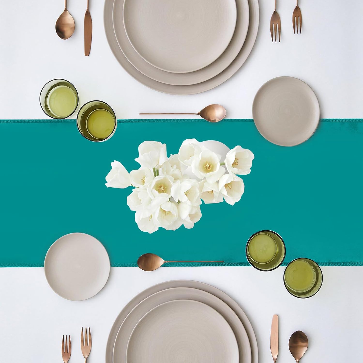 10 Pack Satin Table Runner 12 x 108 Inch Long Peacock Blue Silk Table Runner for Wedding Party Banquet Birthday Decoration