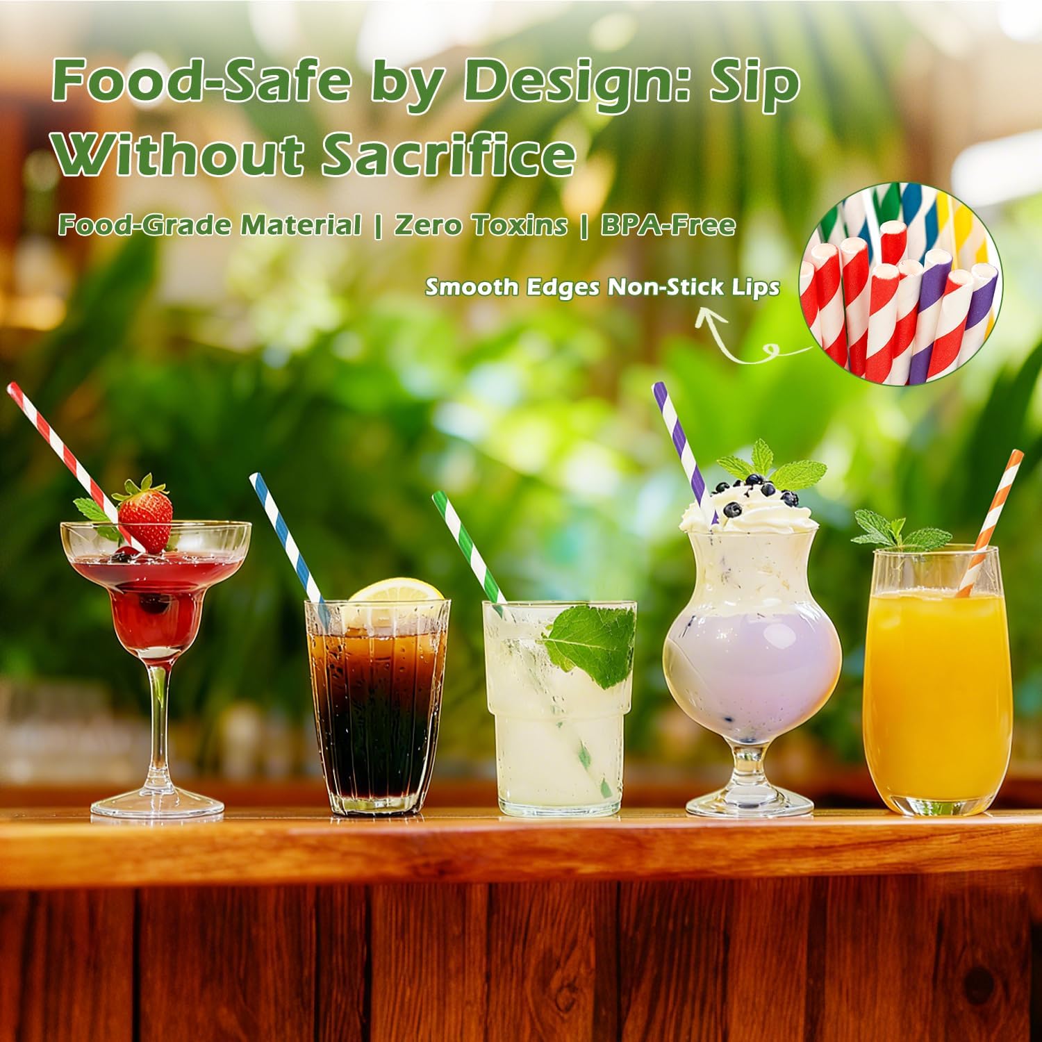 100 Pack Striped Paper Straws for Drinking– Sturdy & Non-Soggy – 100% Biodegradable disposable, Food-Safe Ink colorful straws, and Multi-Layered for Long-Lasting Use-Daily/Party/business