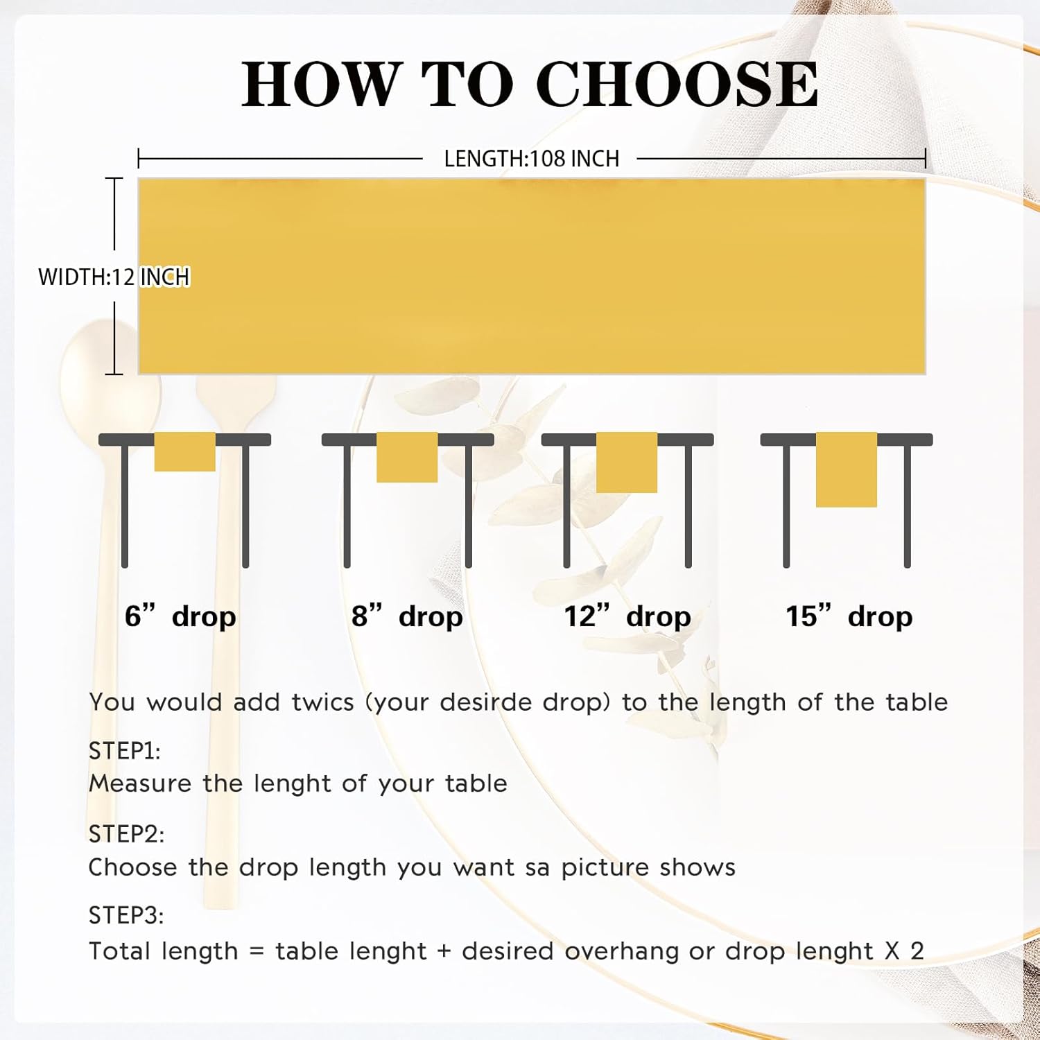 - Package Include: Each gold satin table runner measures 12" x 108", total 10 packs, which is appropriate for rectangle or round tables that can seat 8-10 people.